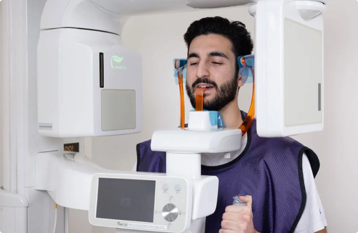 ادخل إلى المستقبل مع التصوير بالأشعة المخروطية CBCT. توفر هذه الأداة التشخيصية المتطورة رؤية بزاوية 360 درجة لهياكل أسنانك، مما يتيح التخطيط الدقيق لكل شيء بدءاً من الغرسات وحتى قنوات الجذر. هكذا نرتقي بالعناية بالأسنان إلى المستوى التالي.